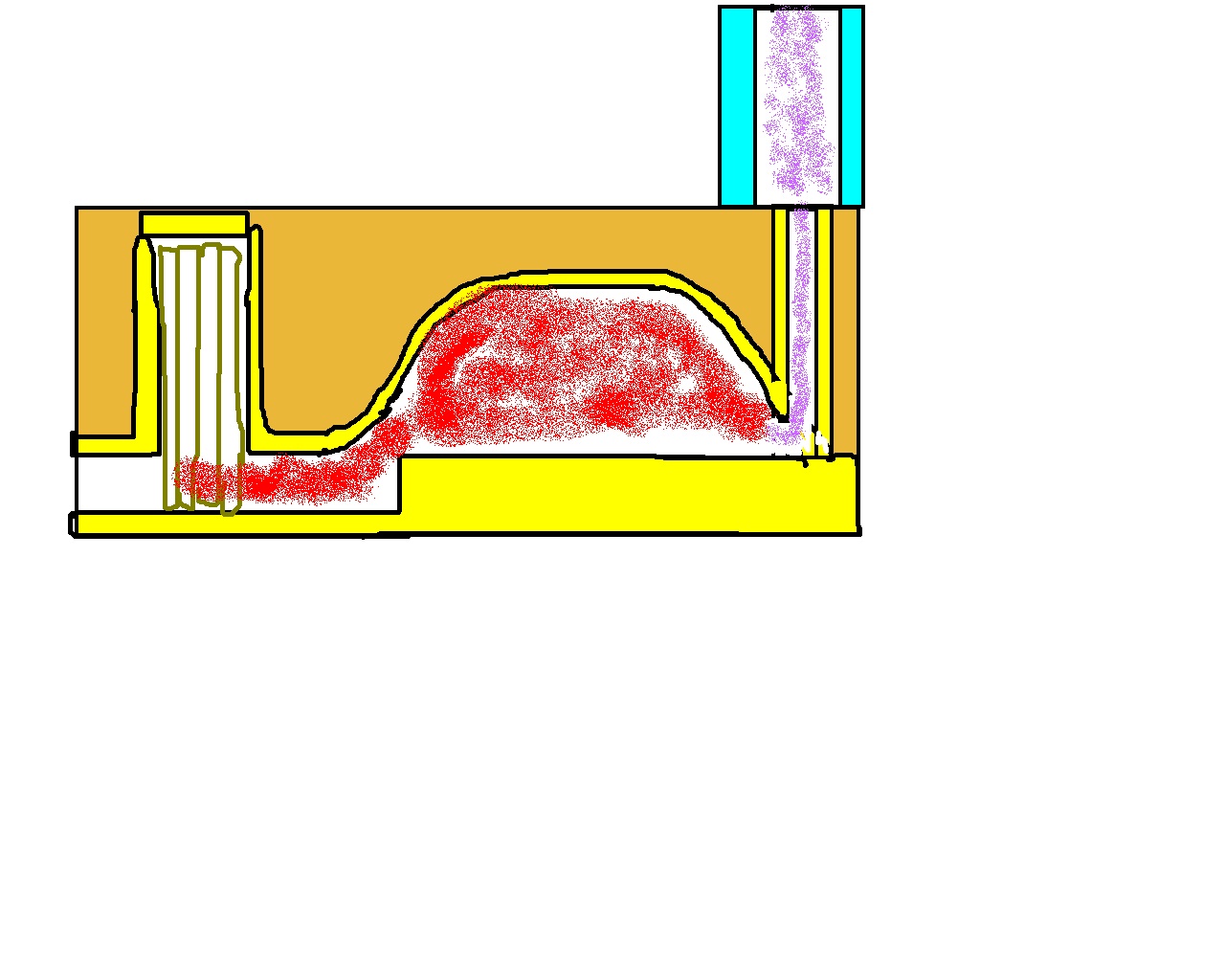 В недельный режим протопки присывается и баня в конце "туннеля", также расчитанная ловить остатки тепла. Емкости под нагрев воды в бане, для бытовых нужд дома. Закладка дров для продолжительного горения? Как такой вариант: в первый куполок врезаем несколько топок. Одна основная. Другие(другая) располагается под крутым углом для закладки в неё 3-4 длинных бревнышек. чтобы горели как свечки.