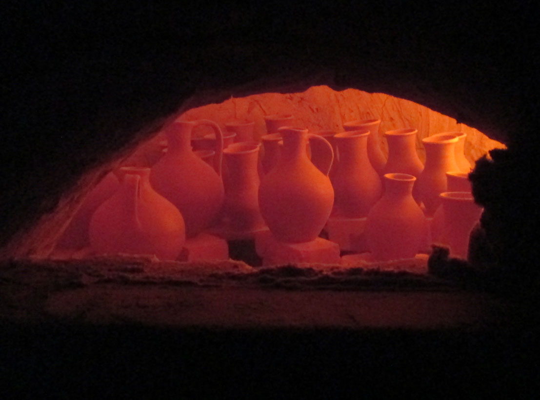 Прогревал большую уличную обжиговую ПДА. Дров пошло на порядок больше чем летом и осенью, да и мощность горелки я снизил путем уменьшения проходного сечения. Догнать до 1000С так и не получилось, как мне по цвету показалось. Забыл приборы взять и конус не слепил. Топил 17 часов, из них в около красном цвете продержал садку часов семь.