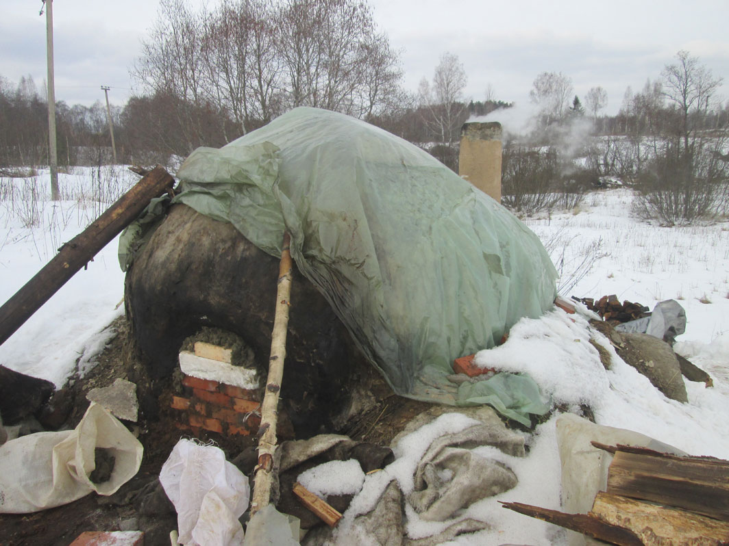 Тут все повлияло на время разгона печи - топка и выпускной коллектор в мерзлом и достаточно сыром грунте, толщина стенок купола всего 100мм, поэтому, из-за зимних особенностей прирост температуры давался с трудом, но мне понравился отопительный результат. Сегодня, по прошествии полутора суток после окончания протопки, в мороз от минус десяти ночью и минус пять днем, в печь не влезть, и даже замуровку окна не разобрать, горячая. Вот что дает хороший прогрев грунта.