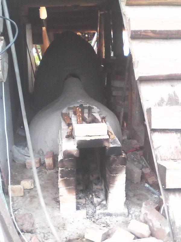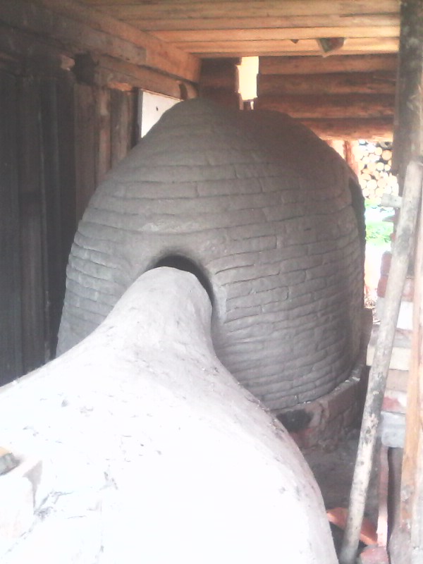 Тандыр и КВС лепил из огнеупорной глины(1600)+мертель+опилки. после КВС(сзади)еще купол из красного кирпича поставлю. впереди работы по обмазке,полостьдля вторички сделаю. верх квс утеплю базальтовой ватой.