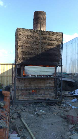 Поэтому, хочу сообщить, что это уникальное решение для этого уникального случая. Если бы начинали хотя бы с фундамента и с нормальным бюджетом, то печь выглядела бы несколько иначе. Эта печь была реализована почти как благотворительная акция. По дружбе. Отсюда все натяжки в исполнении. Я получил некоторые практические подтверждения некоторым предположениям и данным. Не успел провести замеры. Печи уже нет. Сжигание перевезли почти в чистое поле где нет пока жалобщиков. И жгут костры просто на земле.